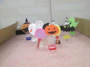 ひばり園で作った仮装やお菓子入れを使って、ご家庭でもハロウィンパーティーを楽しまれてくださいね(^^)